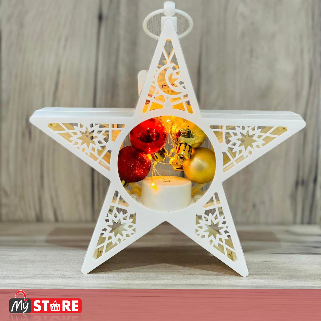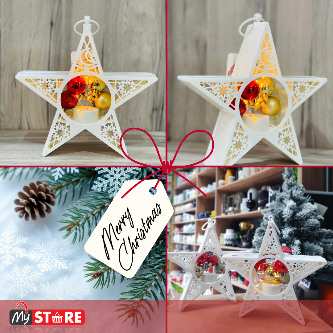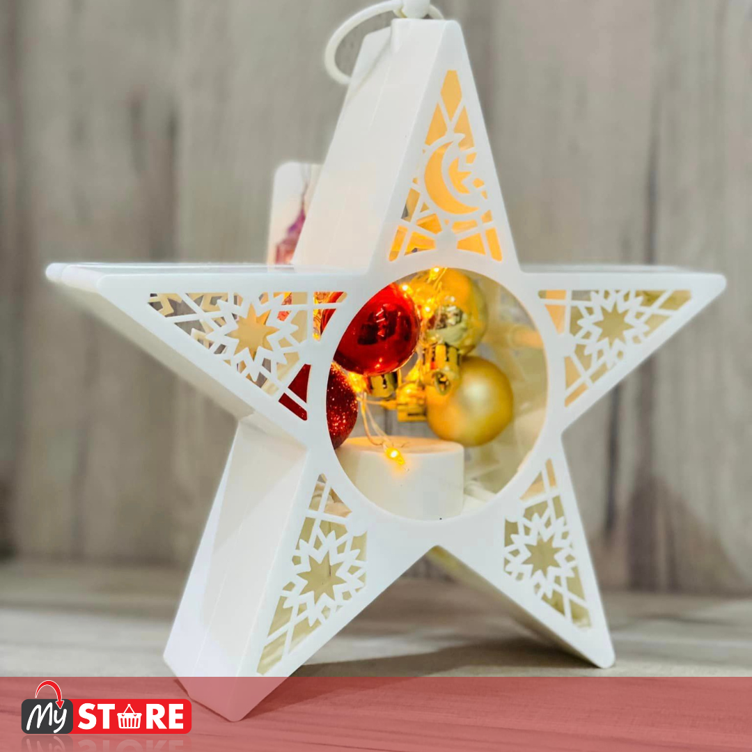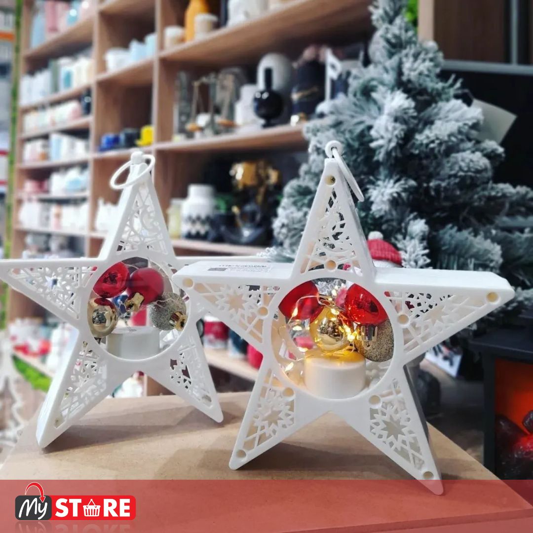 Украсете го вашиот простор со ова уникатно светлечко новогодишно ѕвездено фенерче исполнето со блескави празнични топчиња.