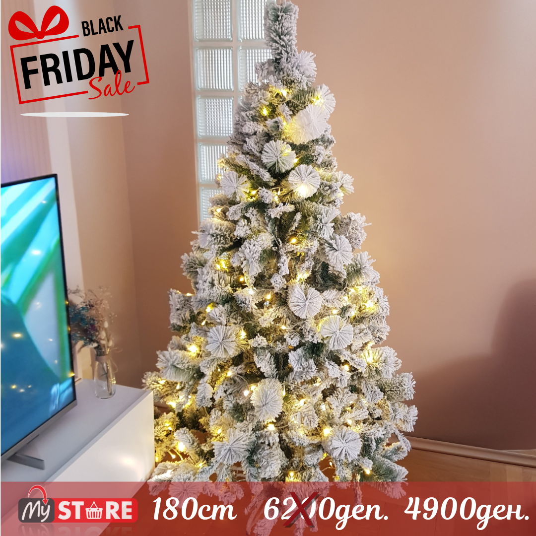 Exclusive Line Новогодишна елка со снег 180cm 576 екстра густи гранки со врвен квалитет. Секоја гранка се мести посебно.