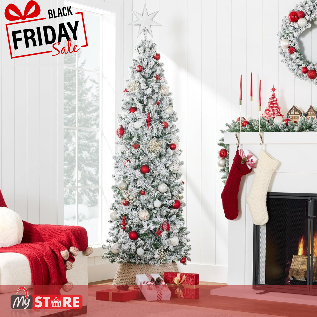 Exclusive Slim Line снежна новогодишни елка 210cm. Ултра модерна и невообичаена новогодишна елка од Slims линијата со 754 гранчиња. Овој модел на елка е за елегантен и модернистички изглед на вашиот дом или деловен простор. Декорирањето новогодишна елка е традиција која се негува сé до денес, нé води низ празничната магија и не познава години. Од најмалите генерации па сé до најстарите, сите се радуваат на моментот на китењето на елката.